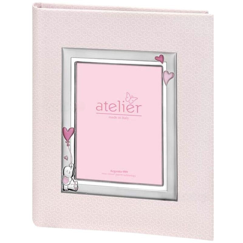 Album bimba con portafoto in argento laminato "elefantino e cuori"".
