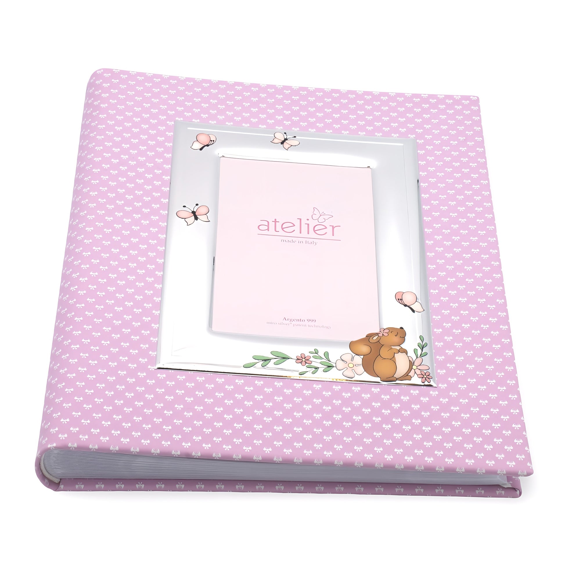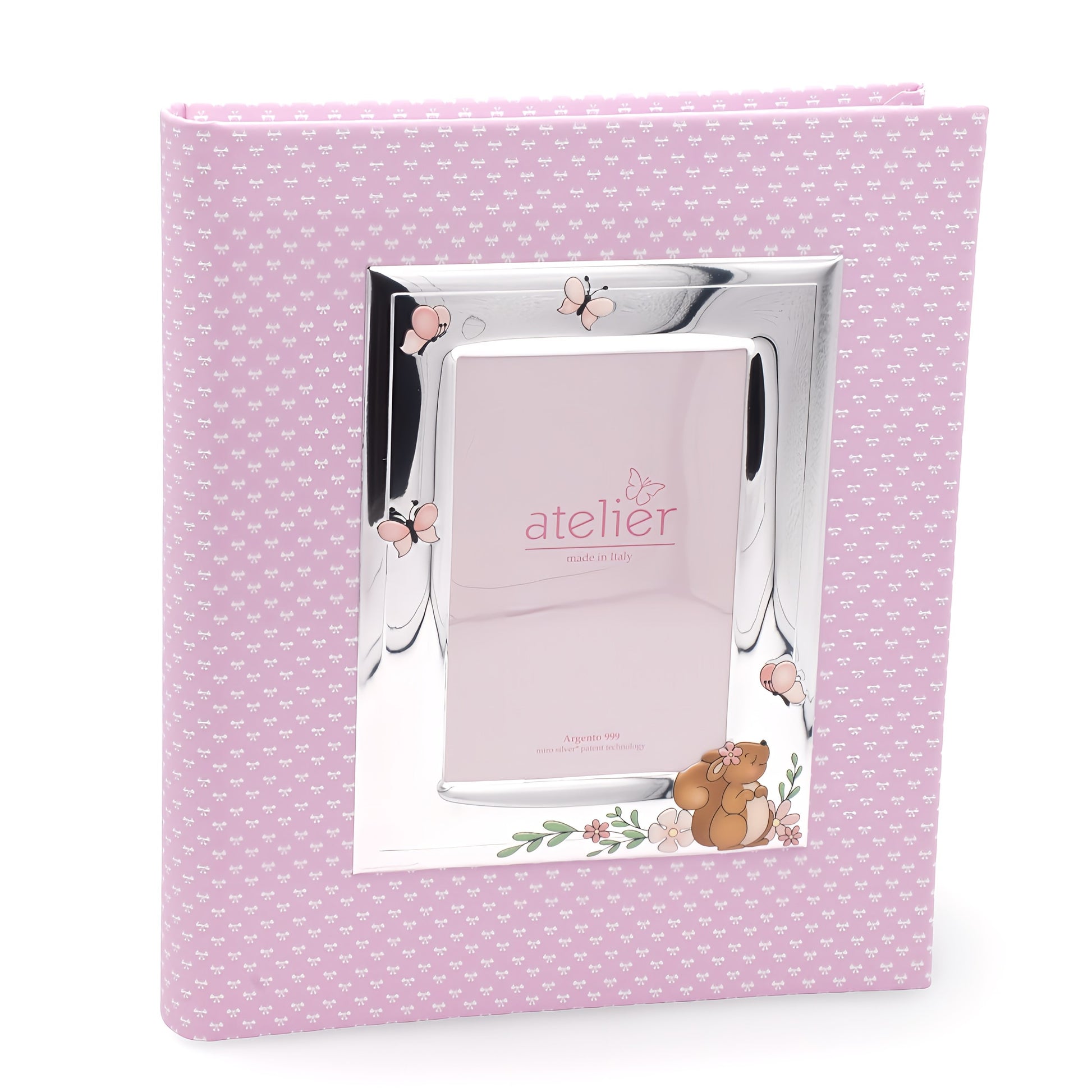 Album bimba con portafoto in argento laminato "elefantino e cuori"".
