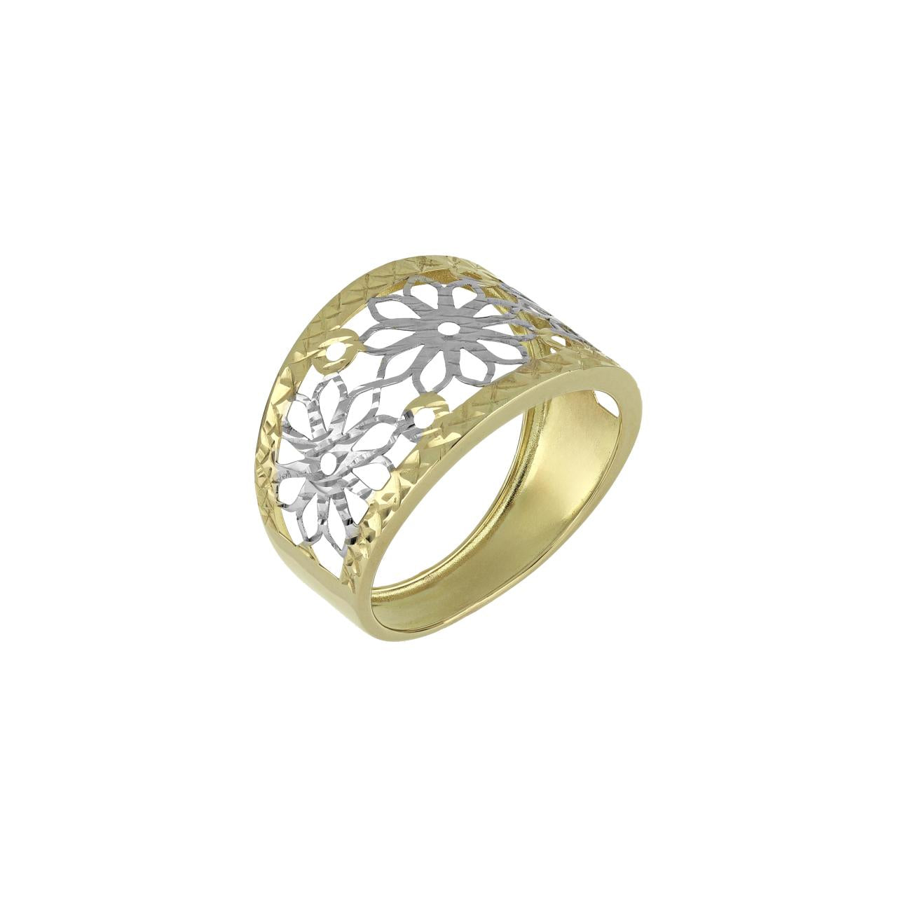Anello in oro giallo e oro bianco 9 kt - 375‰, modello a fascia larga traforata.