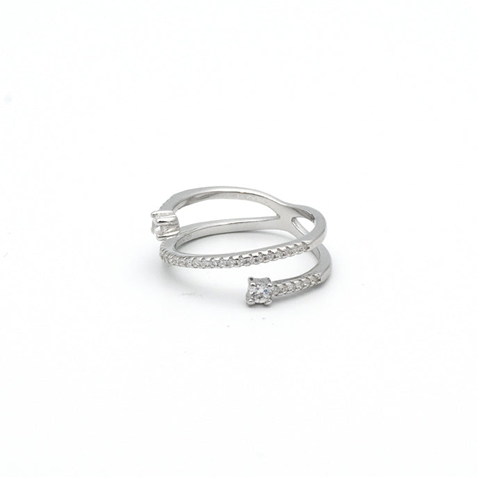 Anello modello "contrariè in Argento 925 placcato Oro bianco, impreziosito da zirconi bianchi naturali