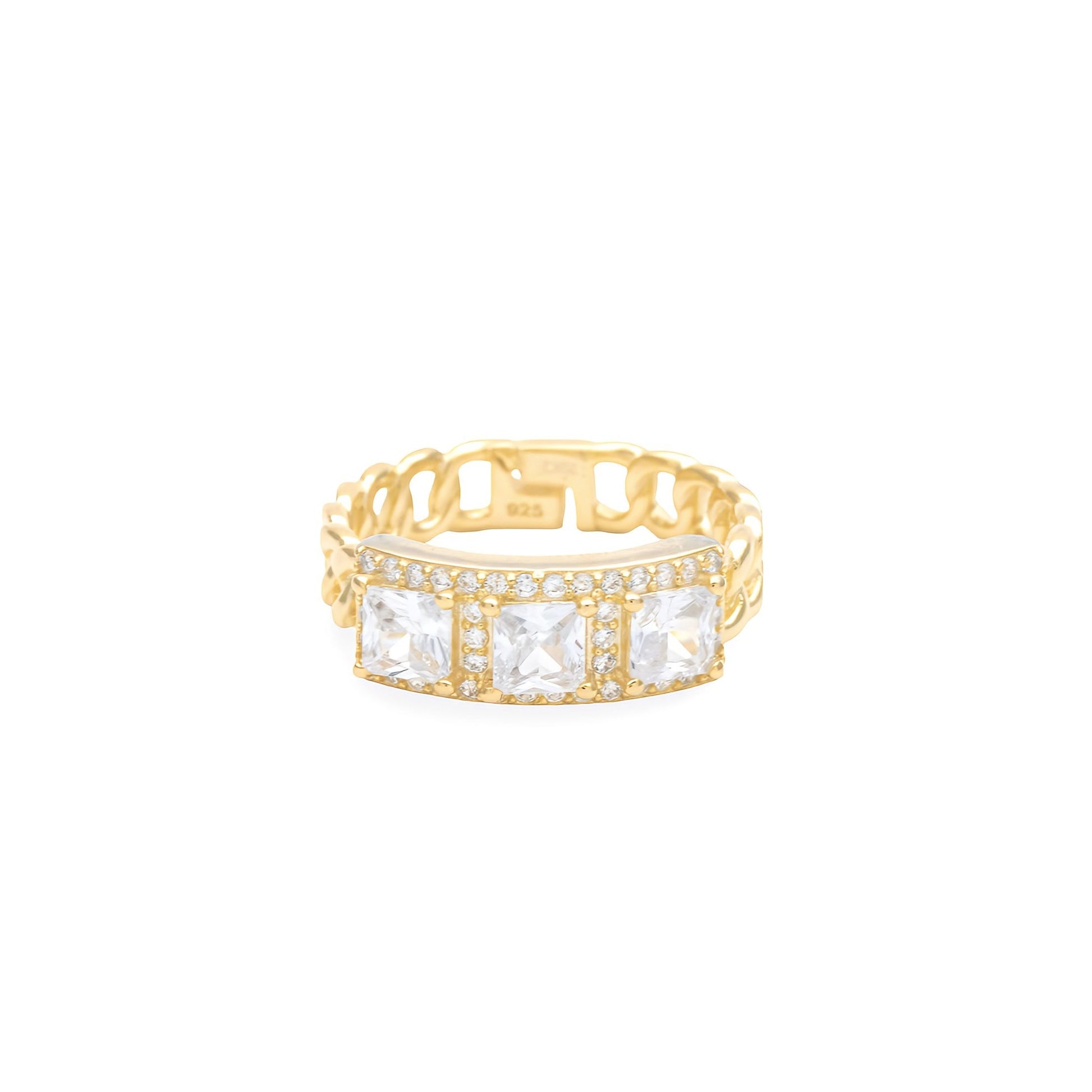Anello trilogy groumette in Argento 925 placcato oro giallo, con cristalli e zirconi bianchi.