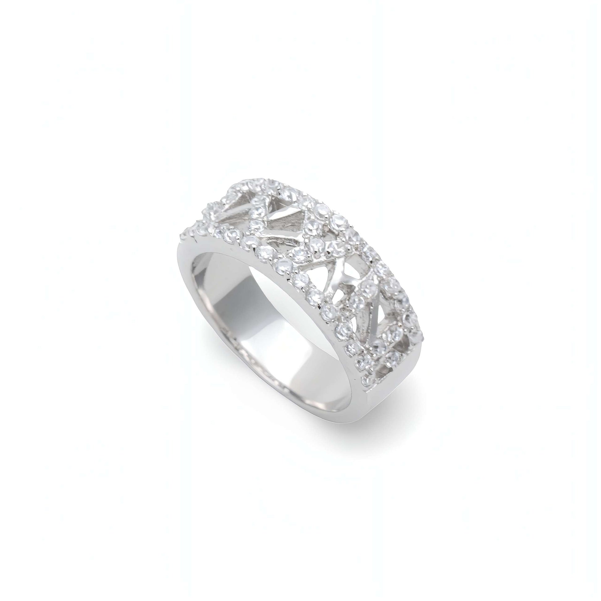 Anello in Argento 925 placcato oro bianco, impreziosito da zirconi bianchi naturali