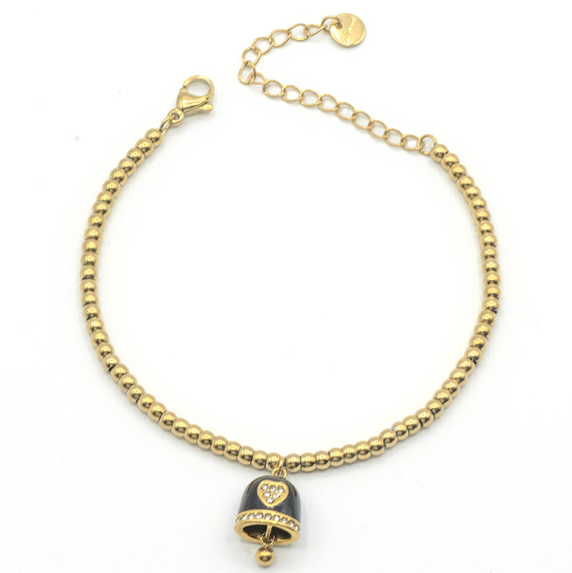 Bracciale dorato a sfere con campanella di Capri smaltata, impreziosita da zirconi.