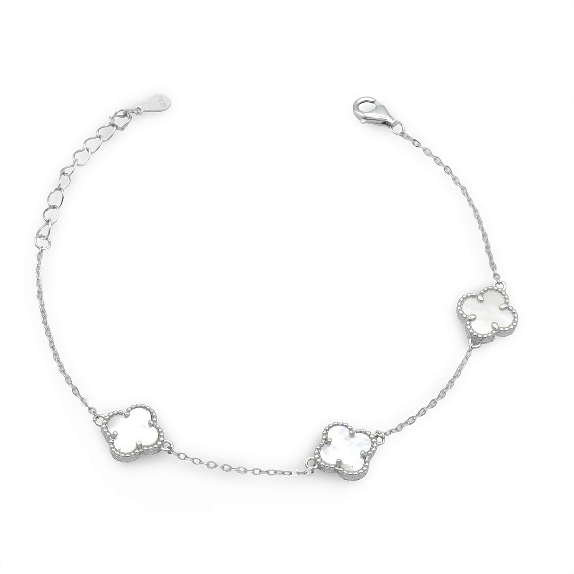 bracciale in argento 925 placcato oro bianco con fiori di madreperla .