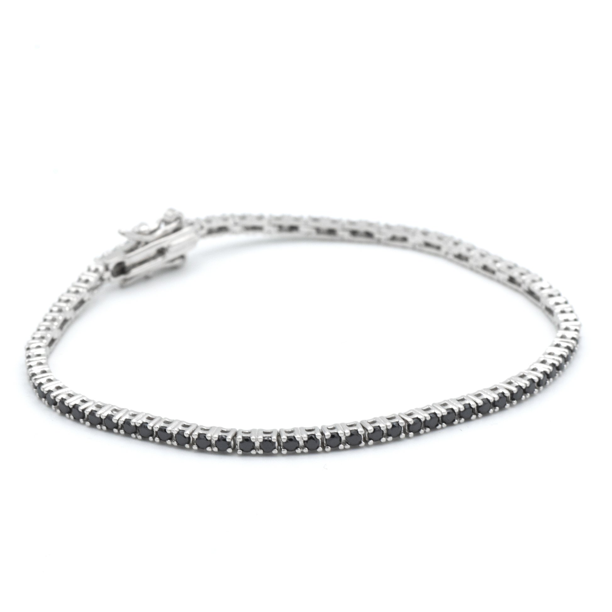 Bracciale tennis in argento 925 placcato oro bianco e pietre nere.