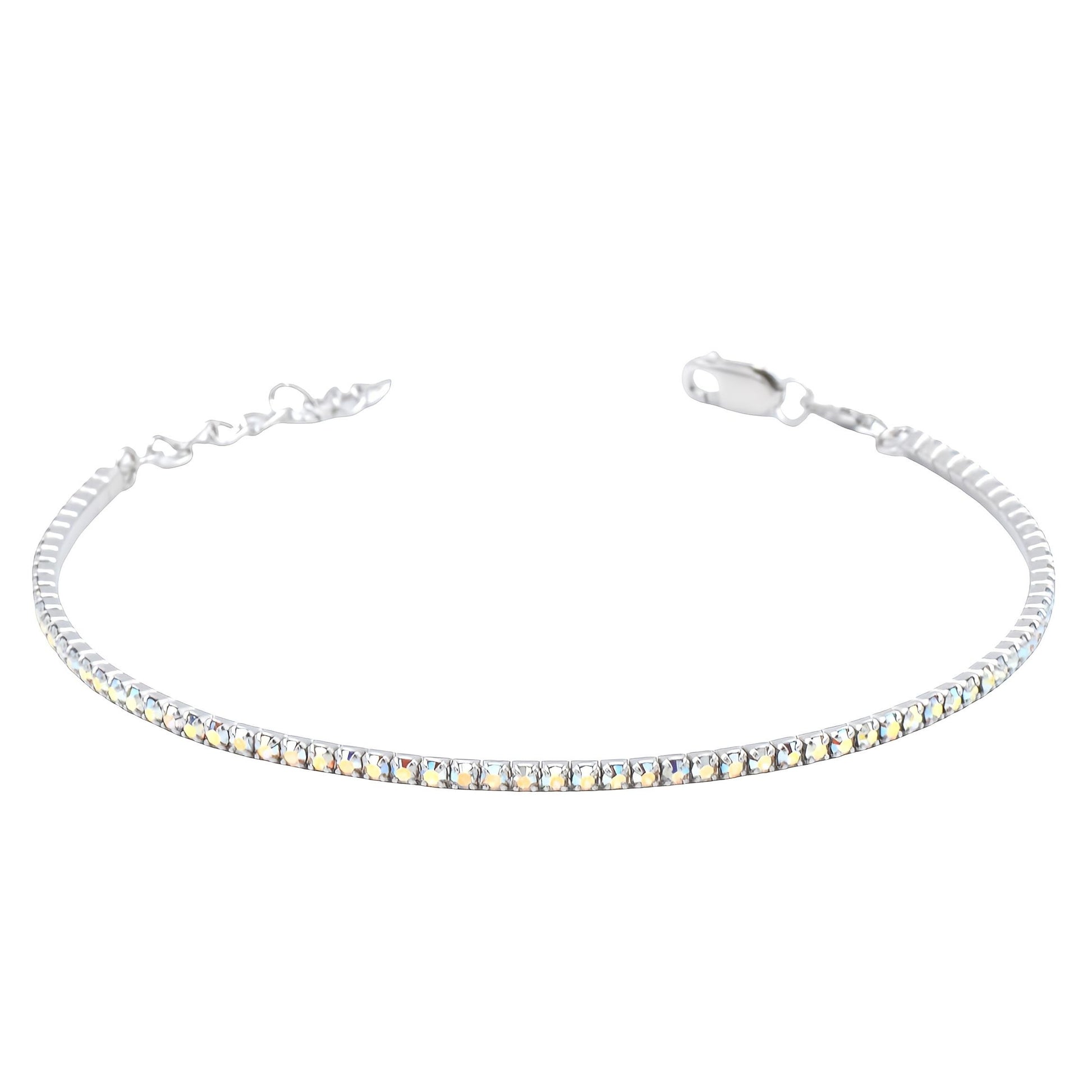 Questo affascinante braccialetto tennis con pietread ologramma è realizzato in argento 925 e placcato in oro bianco, può essere regolato da 16.5 a 19.5 cm di lunghezza, con una larghezza di 2 mm.