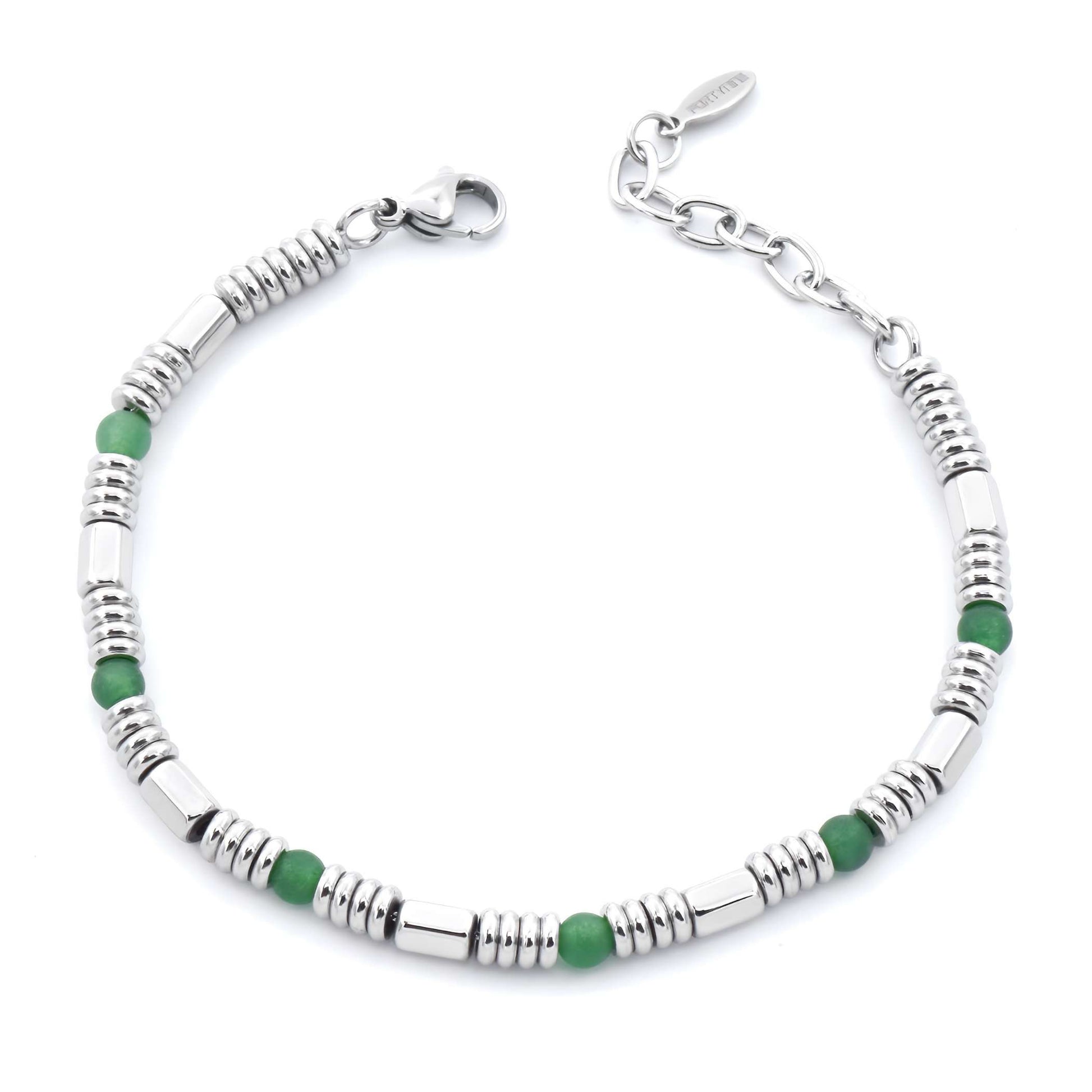 Bracciale da uomo in acciaio e sfere in pietra verde.