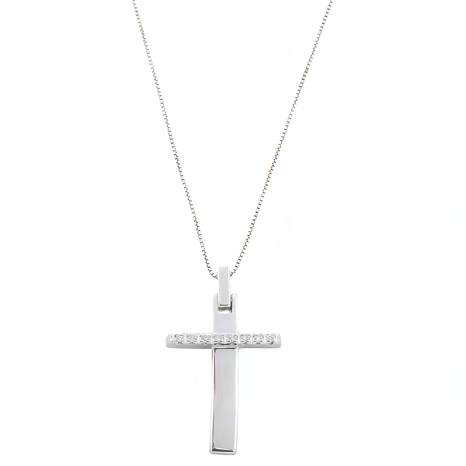 Collana veneziana in oro bianco 18 carati con croce e zirconi bianchi.