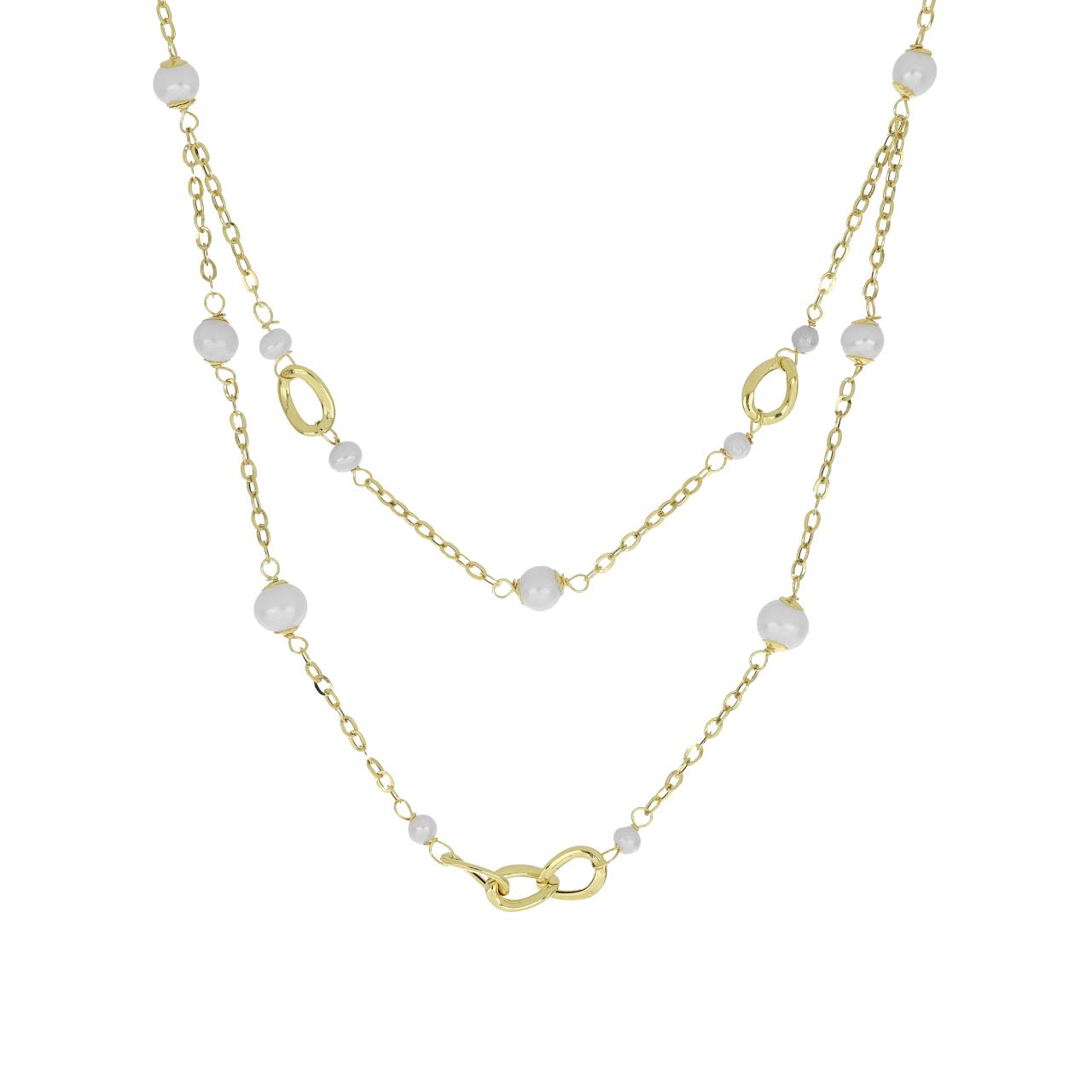 Collana doppio filo in oro giallo 9 kt - 375‰, con elementi groumette e perle naturali di acqua dolce.
