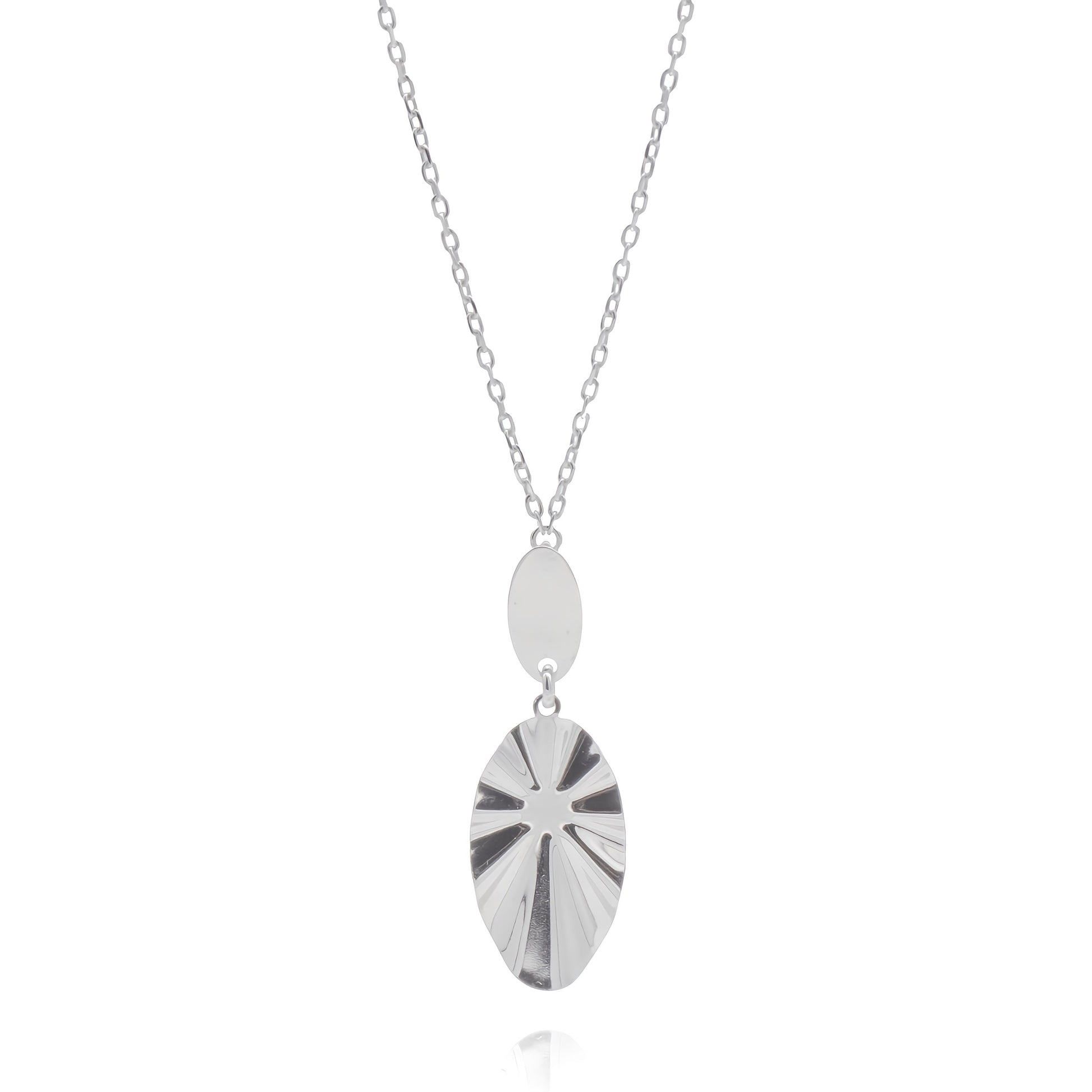 Collana in argento 925 placcato oro bianco con pendente ovale ondulato.