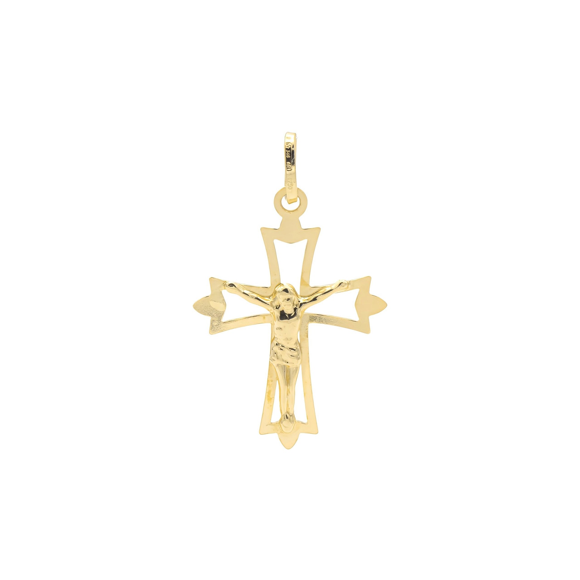 Croce con Cristo in oro giallo 18 carati - 750. Finitura lucida.