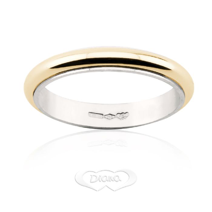 Fede Bicolore da 4.40 grammi, in oro giallo bombato al centro e bordini in oro bianco. Larghezza 3.8 mm.