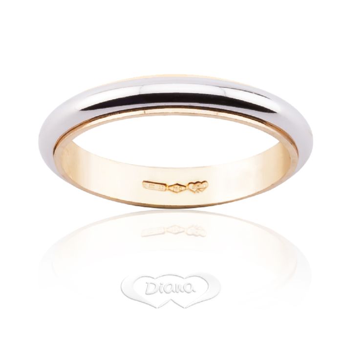 Fede Bicolore da 4.40 grammi, in oro bianco bombato al centro e bordini in oro giallo. Larghezza 3.8 mm.