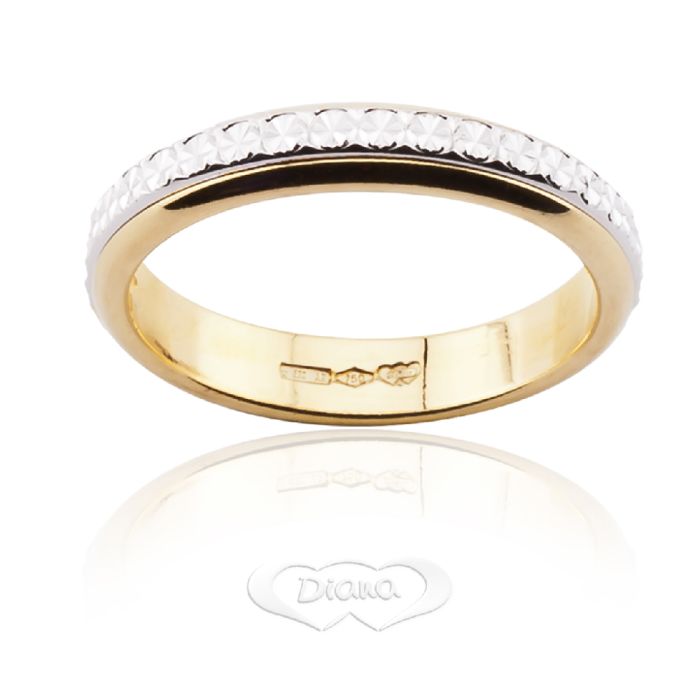 Fede da 5 grammi in oro giallo con centrale girevole sfaccettato in oro bianco.