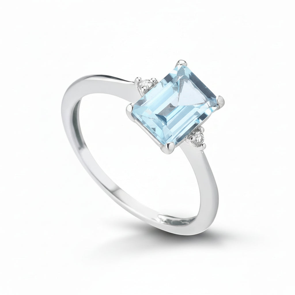 Kioto Anello in Oro bianco Diamanti e Topazio Rettangolare