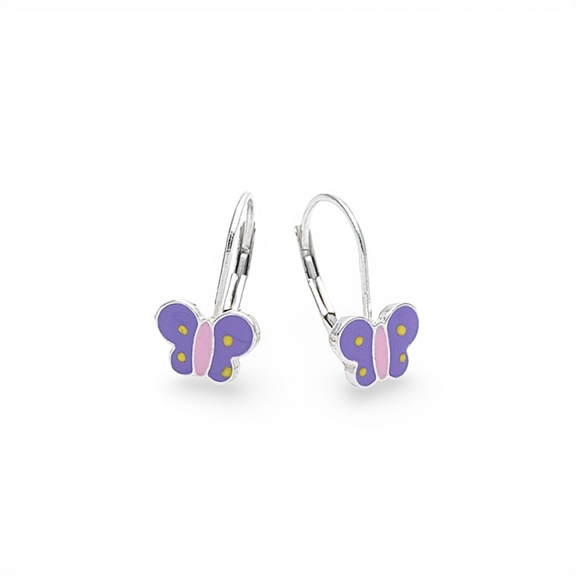Orecchini bimba in Argento 925 placcato oro bianco con farfalline smaltate.
