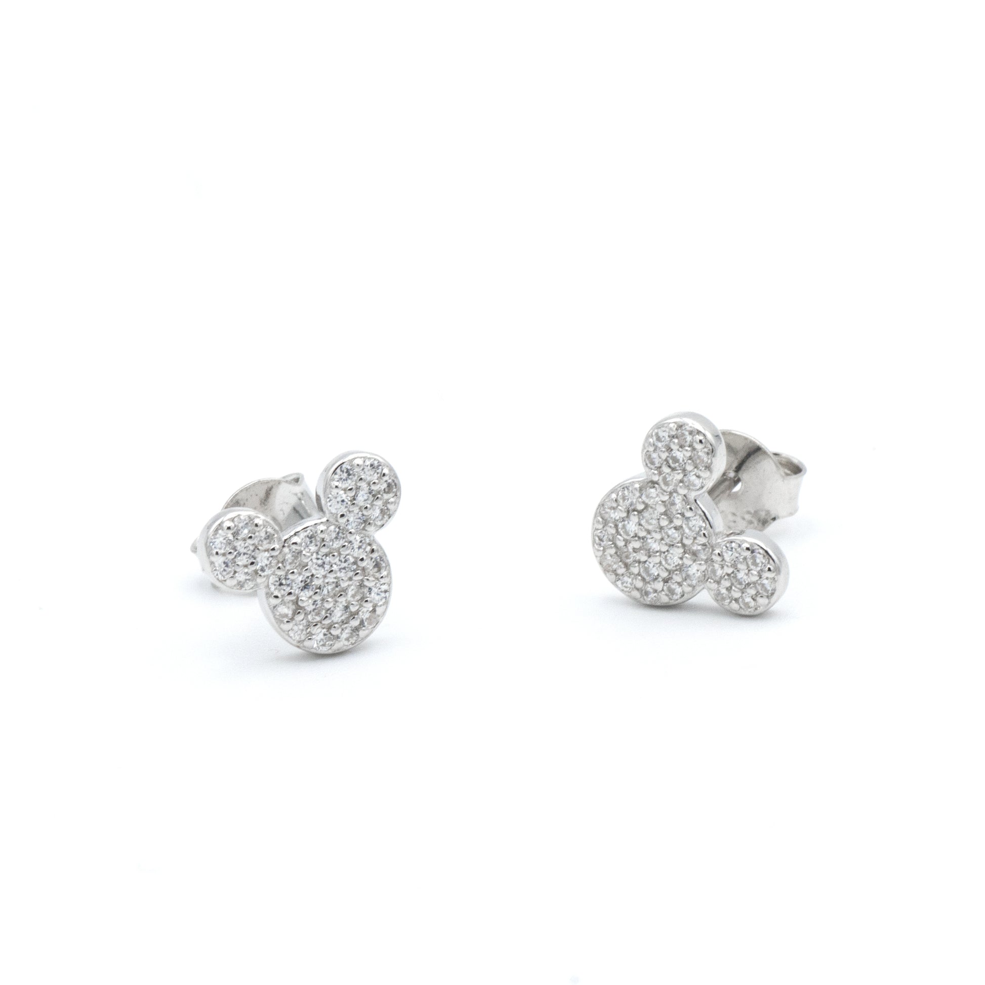 Simpatici orecchini da bimba in argento 925 a forma di Minnie a pavè di zirconi.