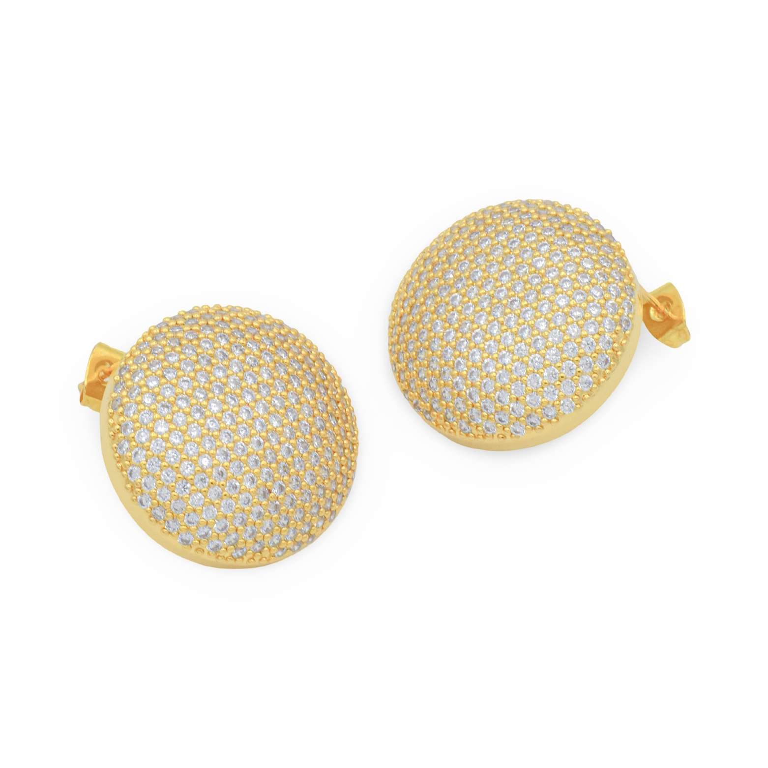 Orecchini bottone dorati a pavè di zirconi bianchi .