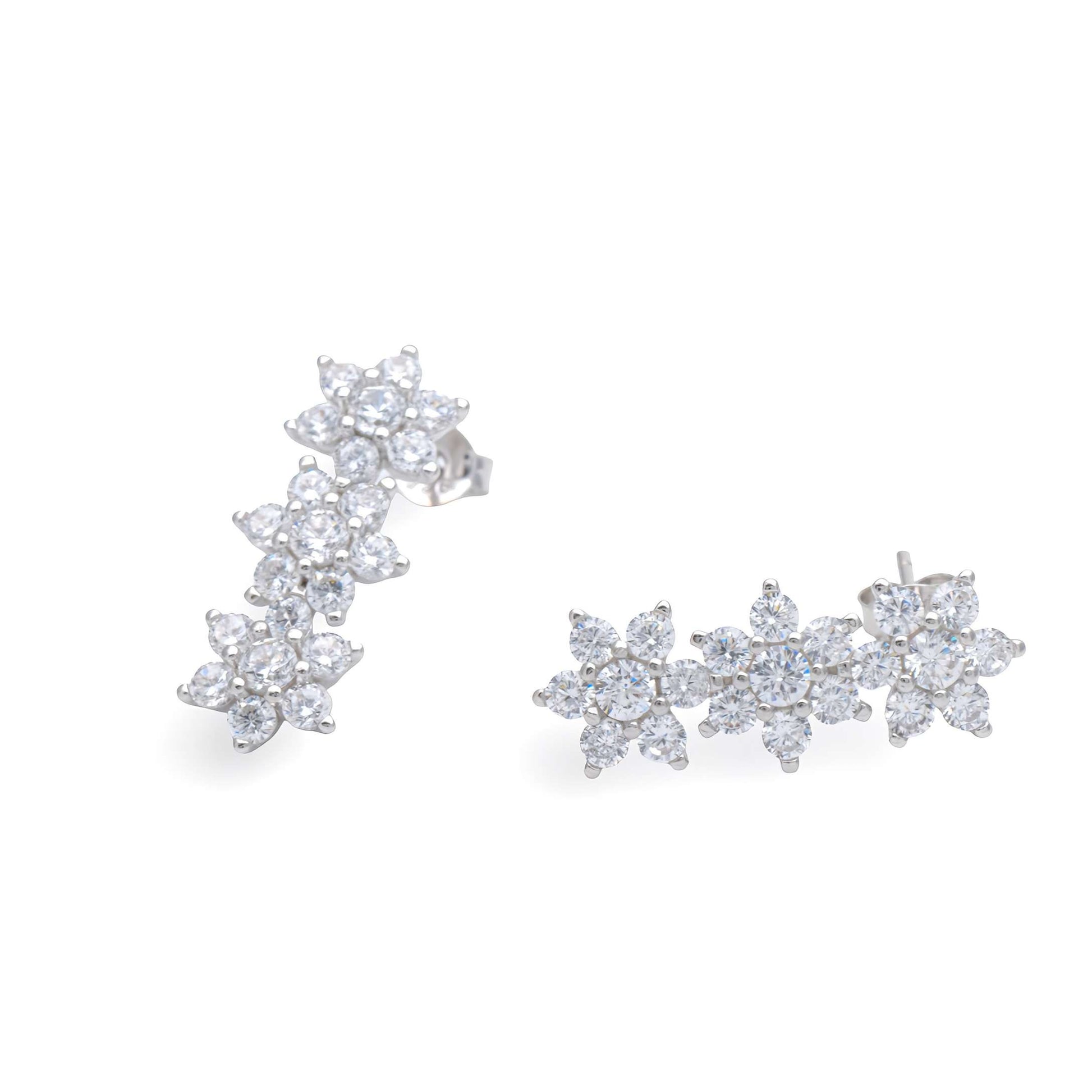 Orecchini trilogy modello a fioriin Argento 925 placcato oro bianco, impreziositi da zirconi bianchi naturali.