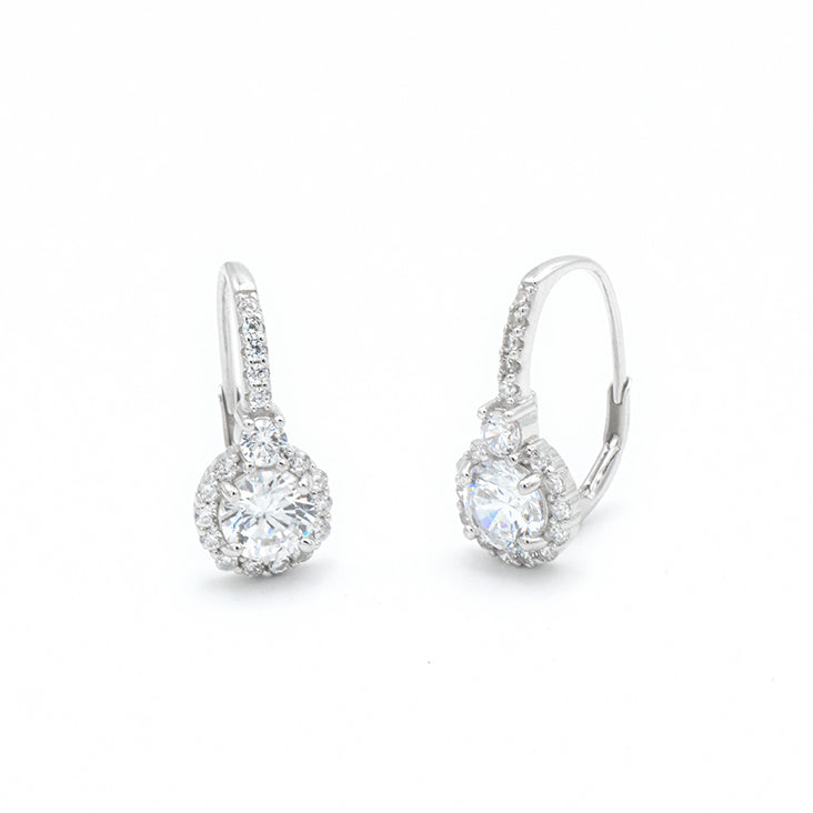Orecchini Punto Luce in Argento 925 placcato oro bianco, con zirconi bianchi naturali.