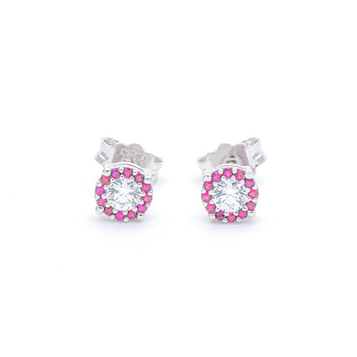 Orecchini punto luce modello Magic in oro bianco 9 kt - 375‰, con zirconi bianchi e rossi.